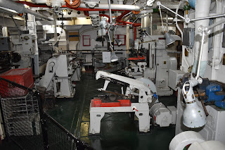 HMS Belfast. Na tuhle nádheru by byla opravdu škoda se nepodívat, takže jsme si koupili dvě vstupenky (17 liber/jedna) a přes můstek přešli na palubu. HMS Belfast byl lehký křižník sloužící v Royal Navy, který byl spuštěn na vodu v roce 1938 a zasáhl do bojů druhé světové války. Od roku 1971 je zakotven na současném místě, spravován muzeem Imperial War a zpřístupněn veřejnosti. Nebudu vás nudit zdlouhavým popisem - zkrátka a dobře, je to skvěle udělané muzeum. Dává možnost nahlédnout do útrob obrovského válečného stroje a ukazuje, jak vše fungovalo (za autentických zvuků). V dnešní době