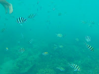 Kupodivu jsme spali až do půl 11, protože na ostrově byl neuvěřitelný klid. Vykopali jsme se z postele, posnídali instantní nudle, kafe 3v1 a začali balit. Měli jsme se stěhovat do slíbených chatek. Šli jsme se tedy zeptat a zatím byla uklizená a volná jen jedna. Při té příležitosti rovnou padl dotaz na šnorchlovací výlet. Slečna z recepce nám rozpačitě sdělila, že výlety se zamlouvají den předem. Na dnešek plánovaný nebyl a tudíž nemá nikoho, kdo by s námi jel. Zklamaně jsme si šli hodit věci do jedné chatky a přemýšleli, co budeme dělat. Za chvíli slečna přiběhla, že prý sehnala týpka, co nás na ten výlet vezme. Domluvili jsme si spicha ve 2 hodiny u recepce a těšili se na potápění. Mezitím jsme zaskočili do stejné restaurace jako včera na lehký oběd. Potom jsme dostali klíče i od druhé chatky a konečně jsme byli plně ubytovaní. Ve dvě na nás čekal kapitán s malým motorovým člunem a se šnorchly. Ploutve prý nepotřebujeme, protože tam nejsou žádné proudy. Měli jsme plavky a tričko, abychom se vyhnuli spálení a vzali jsme samozřejmě i kamery. První zastávka byla Fish garden, místo opravdu plné ryb. Naskákali jsme do vody a rozplavali se všemi směry. Nádherné korály, barevné ryby, průzračná voda, prostě paráda. Já po chvíli zahlédl na dně rejnoka, ale nestihl