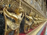 vstupné je rozděleno - cena pro domorodce a potom několikanásobně (často 10x - 20x) vyšší cena pro cizince. Celý prostor před obrovským areálem byl přecpaný turisty. Moje tolerance k obyvatelům Číny se ještě snížila po tom, co mě do hlavy praštilo několik Číňanů deštníkem (ano, při 40 stupňových vedrech - jako Otík farář) při tom, jak se neohleduplně drali kupředu. Ostatně Číňané jsou dle mých zkušeností jedni z nejhorších turistů - jsou naprosto všude (tedy tam, kam je doveze autobus) a jsou velmi neohleduplní při všem, co dělají. Ať už při předbíhání ve frontě, při focení milionu fotek všeho a všude nebo při překážení taktéž všude. Toť malá etnometodologická odbočka, vraťme se k památkám. Královský palác se skládá z více než sta budov v obrovském areálu. Je opravdu velkolepý a člověka ohromí hned po vstupu. Množství budov, soch, zdobení a zlata je