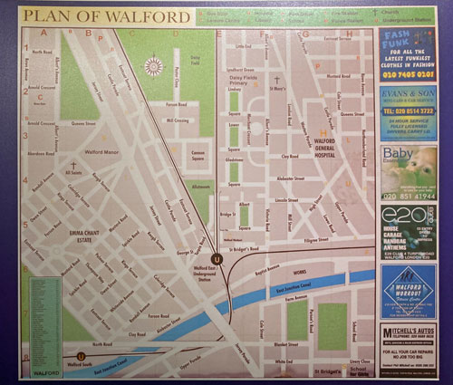 I can only assume that the map was only ever meant to be seen in the background and was knocked up fairly haphazardly by a graphic designer. If her name was Emma Chant, that wouldn't surprise me. It means we can't alas add this to the canon of official EastEnders cartography, which to the best of my knowledge consists of