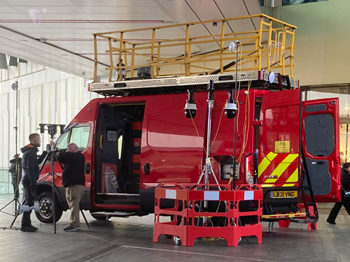 Outside the entrance to Marks & Spencer a big red van had been parked in the middle of the piazza. It had another camera on the roof, and another camera on the roof, also a globe camera on the roof, also sensors on the roof, also four tiny black plastic aerials stuck just above the windscreen. Two more globe cameras hung from a pole positioned beside the van, also another two on the other side of the van, also a sensor on a taller pole pointing forwards towards the cameras I'd seen earlier. A lot of yellow cables threaded out of the van, protected by a strip of blue and white police tape lest any shoppers accidentally disturb them.
