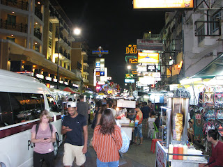 Obrovské davy tancujících místních i turistů, otevřené bary se řvoucí hudbou po obou stranách, stánky s jídlem / oblečením / tetováním / atd., prostitutky, lady boyové, nahaněči zvoucí na kyblík vodky nebo