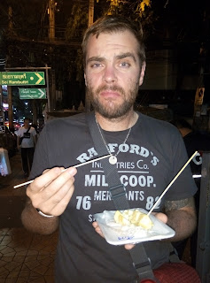 ping-pong show...prostě neskutečné. My jsme si tuhle ulici prošli asi 4x tam a zpátky, dali si pár piv, vyfotili se s různými lidmi a opravdu si tu atmosféru užili. Odcházeli jsme kolem jedné hodiny, to už byli většinou bílí turisté dost opilí a přestávalo se nám tam líbit. Ale zážitek to byl mimořádně silný, při návštěvě Bangkoku to nesmíte vynechat 😀. Cestou zpátky jsme ještě u jednoho stánku probudili kuchaře a dali si extra levný (a extra hnusný) Pad Thai s jarními závitky. Naprosto grogy jsme upadli do komatu někdy před druhou hodinou ráno.