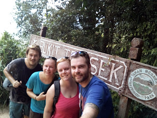sestávala asi z 8 takovýchto chodníčků zavěšených mezi stromy. My s Honzou máme výšky celkem rádi, takže se nám to docela líbilo. Naproti tomu Koskovic rodina se raději drží při zemi, takže Anička a Jíťa vypadaly obě na infarkt. Nicméně přežily to obě ve zdraví, což je hlavní 😉. Po Canopy walk bylo demokraticky rozhodnuto pokračovat na vyhlídku Bukit Teresek. Cesta vedla pořád po chodníku a hlavně - po chvíli začala stoupat a to