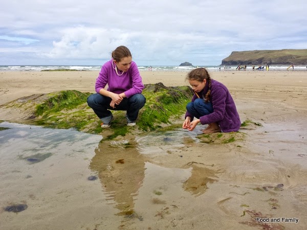 We were near Polzeath in a big house with ample room for us all up on a hill above the Camel estuary. There were several beaches within walking distance (even for my three year old niece though she demanded a shoulder ride every now and then) and it was a wonderful novelty for our farm kids to be able to get about on foot.